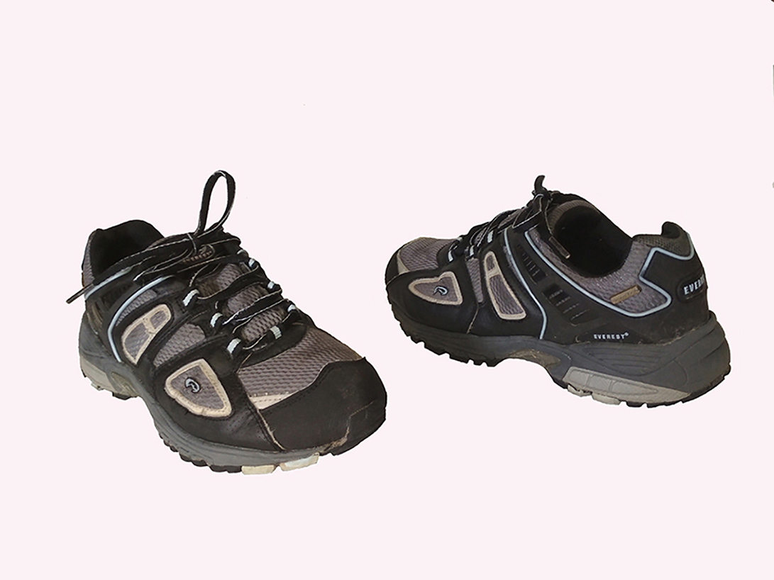 Модель Everest. Италия. Сделано в Вьетнаме. Верх кожзаменитель и ткань. Внутри мембрана SympaTex. Отличие от обычных кроссовок – это толстая рифлёная подошва, как на треккинговых ботинках. Назначение – подходы к высокогорью и бивачная обувь. Подходят для летних походов по Карпатам и как городская обувь. Цена без учёта доставки.