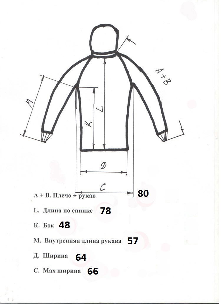 Код На рост, см Обхват груди, см Обхват куртки, см Плечо+рукав, см Длина по спинке, см Капюшон Цена грн. Описание Фото