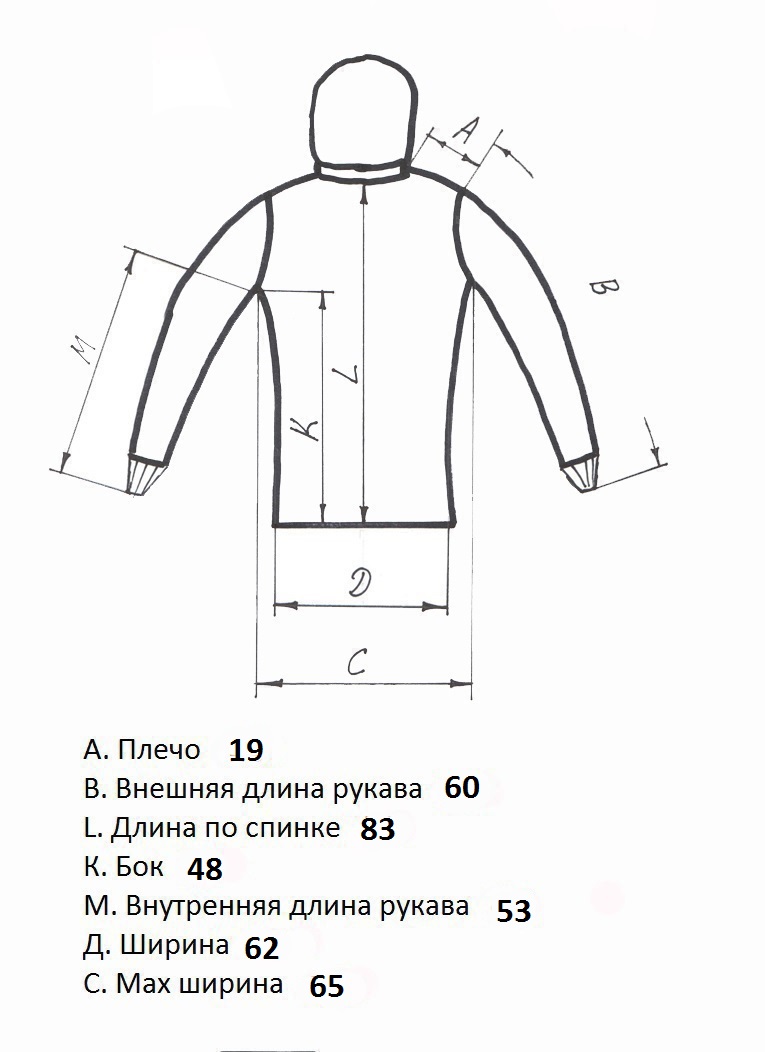 Код На рост, см Обхват груди, см Обхват куртки, см Плечо+рукав, см Длина по спинке, см Капюшон Цена грн. Описание Фото