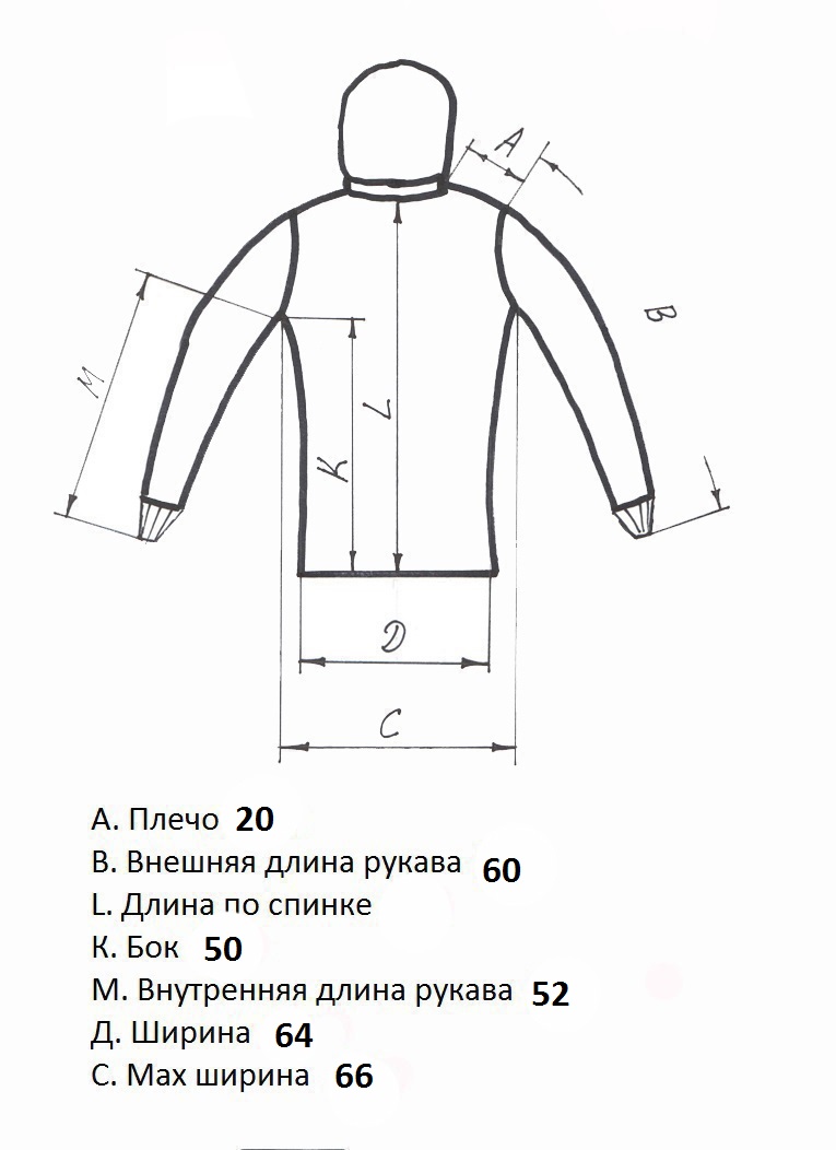 Код На рост, см Обхват груди, см Обхват куртки, см Плечо+рукав, см Длина по спинке, см Капюшон Цена грн. Описание Фото