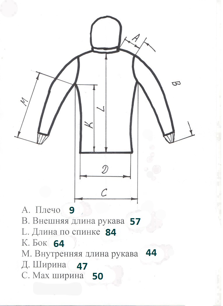 Код На рост, см Обхват груди, см Обхват куртки, см Плечо+рукав, см Длина по спинке, см Капюшон Цена грн. Описание Фото