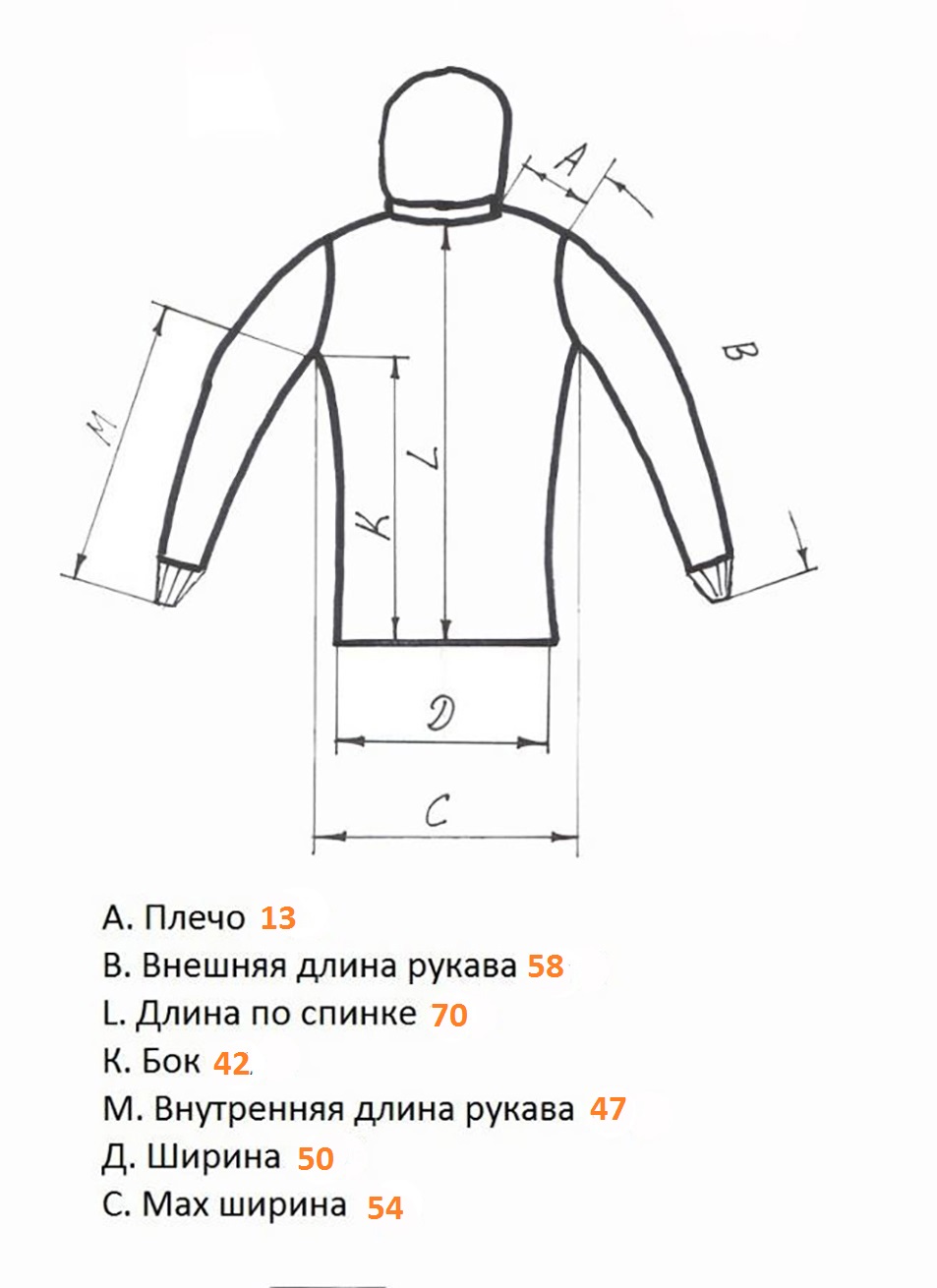 Код На рост, см Обхват груди, см Обхват куртки, см Плечо+рукав, см Длина по спинке, см Капюшон Цена грн. Описание Фото