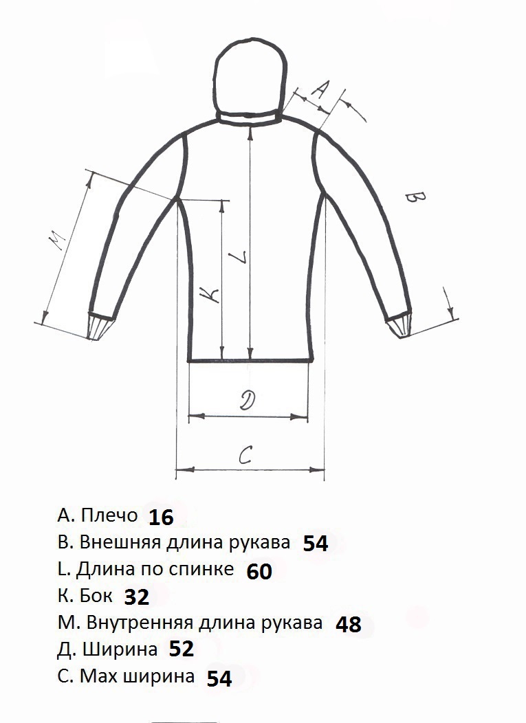 Код На рост, см Обхват груди, см Обхват куртки, см Плечо+рукав, см Длина по спинке, см Капюшон Цена грн. Описание Фото