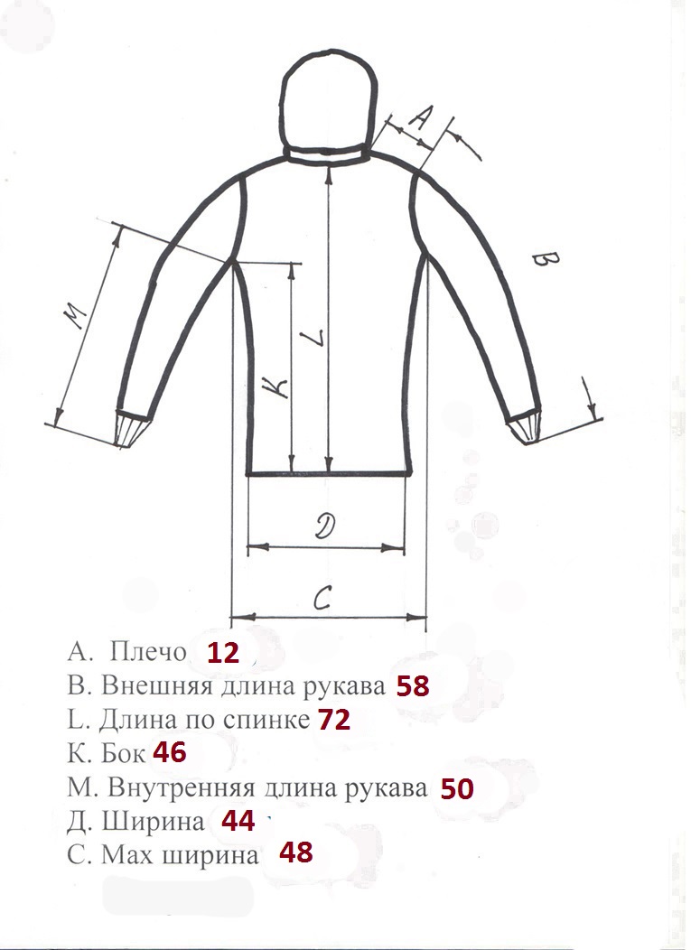 Код На рост, см Обхват груди, см Обхват куртки, см Плечо+рукав, см Длина по спинке, см Капюшон Цена грн. Описание Фото