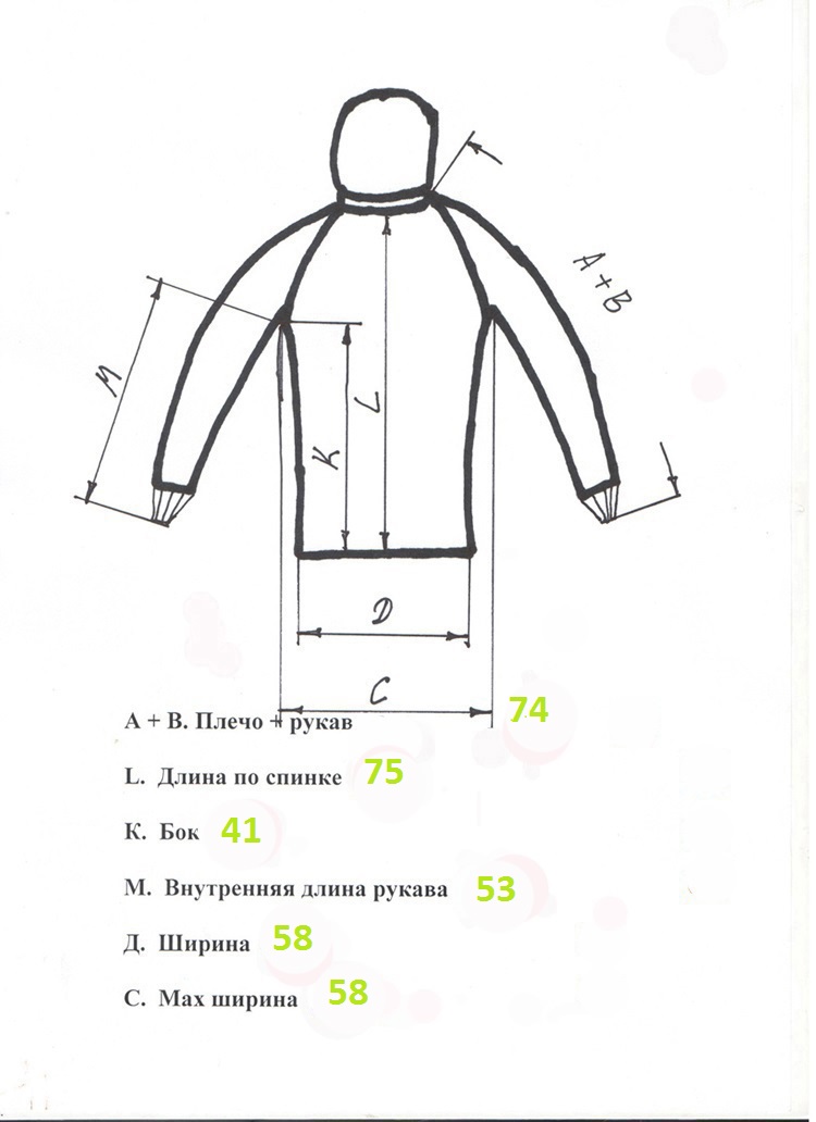 Код На рост, см Обхват груди, см Обхват куртки, см Плечо+рукав, см Длина по спинке, см Капюшон Цена грн. Описание Фото