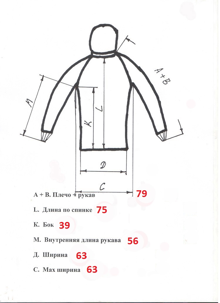 Код На рост, см Обхват груди, см Обхват куртки, см Плечо+рукав, см Длина по спинке, см Капюшон Цена грн. Описание Фото