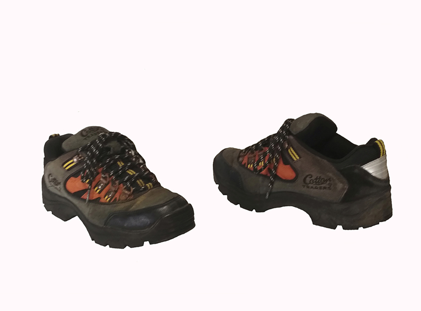 Фирма Catton. Англия. Верх кожа и кожзаменитель. Язычок из ткани. Внутри ткань. Внутри потёртостей нет. Отличие от обычных кроссовок - это толстая рифлёная подошва, как на треккинговых ботинках. Назначение - подходы к высокогорью и бивачная обувь. Подходят для походов по Карпатам в бесснежный период. Недостатки - это ржавчина на петлях шнуровки. Цена без учета доставки.